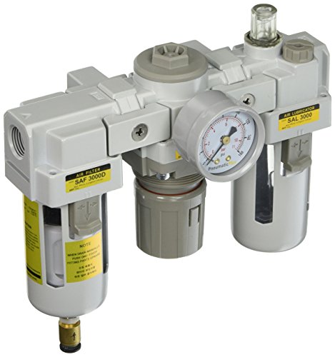 - Product Name: PneumaticPlus SAU3000M-N03DG 3 Unit Combo Compressed Air Filter Regulator Lubricator, 3/8" Pipe Size, NPT-Auto Drain, Poly Bowl with Gauge